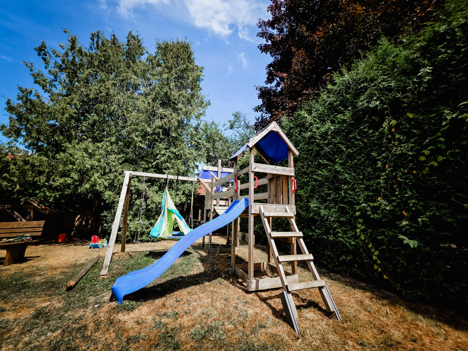 - Bolzplatz mit Fußballtoren, Netz für Badminton oder Volleyball, Trampolin und Basketballkorb (aber bitte erwarten Sie keine Profianlagen)