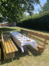 - überdachtem Sandkasten und Feuer- bzw. Grillstelle
