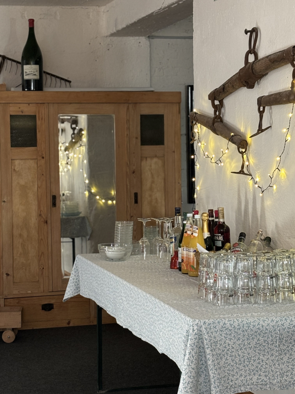 Im Gewölbekeller können Gesellschaften bis zu 45 Personen feiern – „mehr Stimmung hatten nicht mal die Rittersleut“. Alternativ können in unserem Veranstaltungsraum bis zu 80-100 Personen feiern.